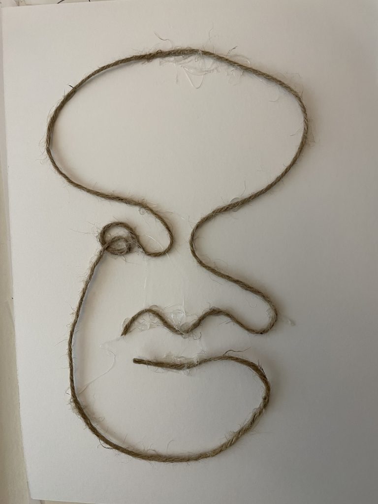 Eye Level/ Augenhöhe, 2019, sheet metal, wire and sand, Installed at the eye level of the artist, Michael O’Brien Exhibition Commons.